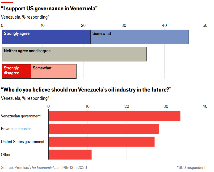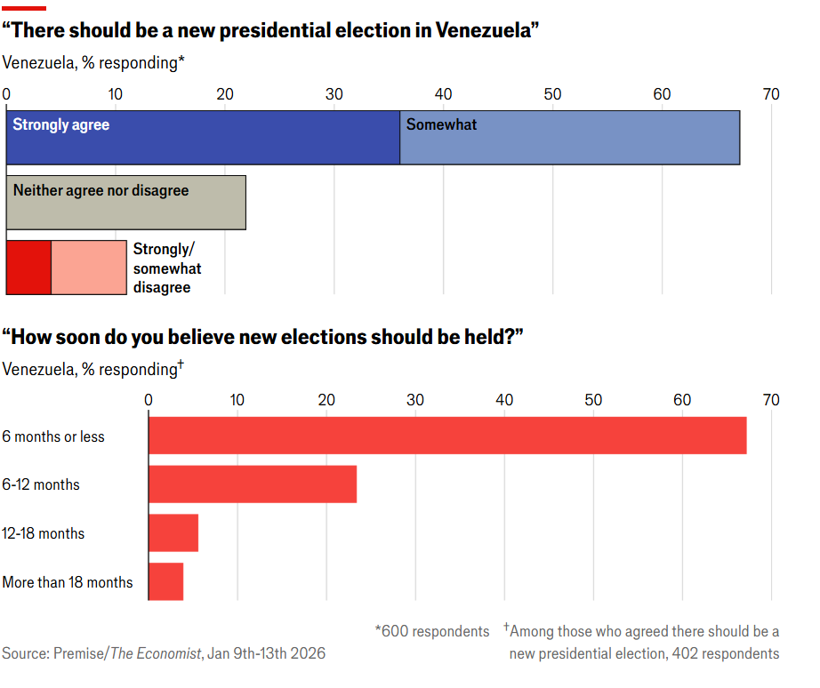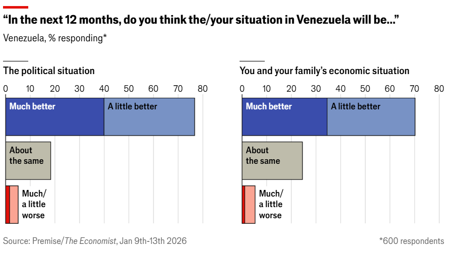 - Espero me perdonen mis amigos de The Economist, pero por ser de mucho interés quisiera compartir aquí los gráficos de una encuesta que han publicado sobre la situación en Venezuela, que pueden ver más desarrollada en el artículo que encuentran aquí.